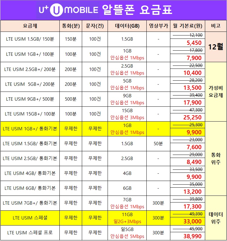 통화, 문자, 데이터가 모두 포함된 요금제이며, 통신망은 KT와 LG 2개다. 각 기능을 살펴보면 KT는 다양한 부가서비스를 이용할 수 있으며, LG는 15XX, 050X, 50~300명 영상통화 등 부가서비스를 제공하고 있다. 우리는 추가 시간을 제공합니다. 요금제는 경제형, 약정형, 무제한으로 나누어져 있어 필요에 따라 선택하실 수 있습니다. 자주 사용되는 요금제를 소개하겠습니다. LTE 396 10.3GB / 월 39,600원 통화, 문자, 데이터 제한 없이 마음껏 사용하실 수 있습니다. LTE 데이터는 10.3GB가 제공되며 이후 3Mbps 속도로 사용 가능하다. 가격대비 효과가 좋기 때문에 많은 분들이 이용하고 계십니다. 2) USIM 준비