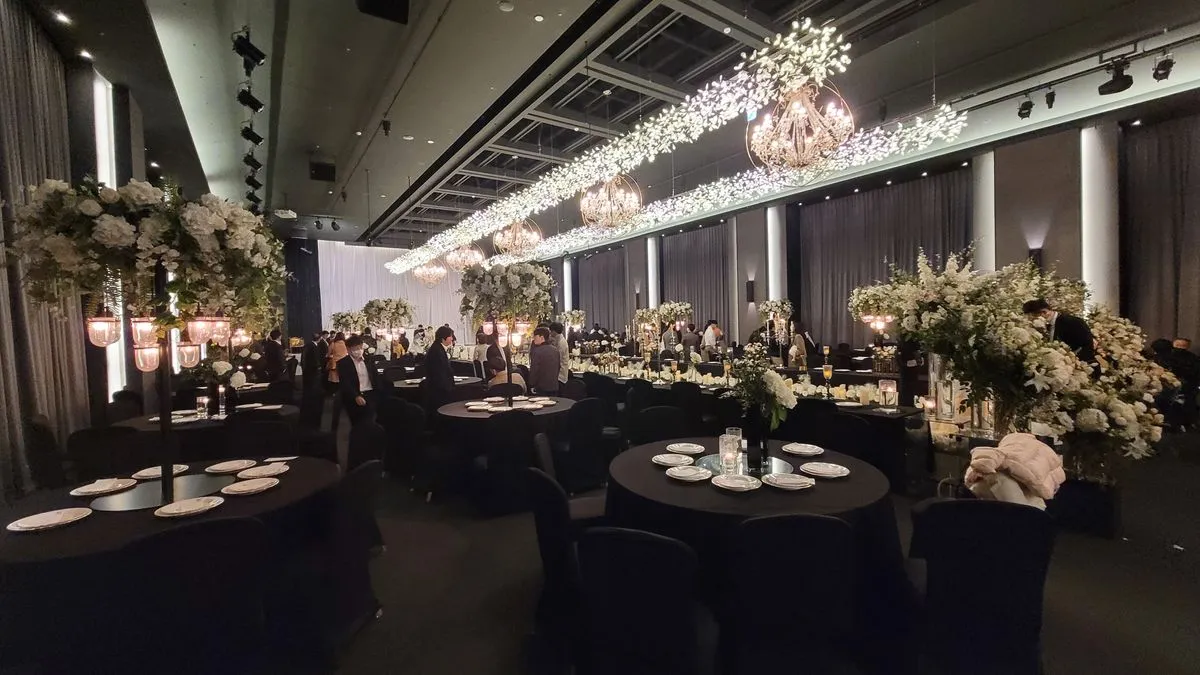 웨딩홀은 총 2개 입니다. 엘리베이터가 4개 있어서 층간 이동에 불편함은 없었습니다. 개인적으로 1층 로비가 정말 마음에 들었어요. 손님들이 쉴 수 있는 라운지 공간도 있었고, 천장이 높아 개방감도 있었어요. 더. 5층 노블레스홀
