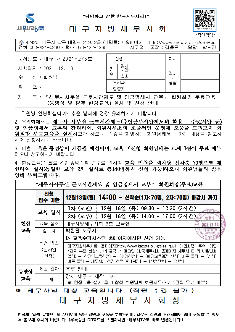 대구 북구 세무사, 세무사반은 사무실이 없습니다. 세무사 대표가 귀하를 직접 돕고 귀하의 산업에 대한 세금 조언을 제공합니다! 또한, 4대 보험 절세 방법에 대한 제안은 물론 조세감면, 면세 등 절세도 도와드립니다 현장에 오시면 대표 세무사가 궁금증을 직접 해결해 드립니다. 세무서비스, 세무컨설팅, 세무컨설팅, 절세컨설팅 등 상담원이 여러분의 비즈니스를 도와드립니다. 대구 북구 세무사 세무회계 수업 함께해요, 수업의 다름을 느끼고 남보다 먼저 내 사업을 생각하게 해주세요.