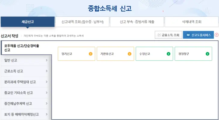 수령하신 신고 안내문에서 신고 유형을 확인한 후 본인의 신고 유형을 선택하여 각 항목을 입력하여 신고해 주시면 됩니다.