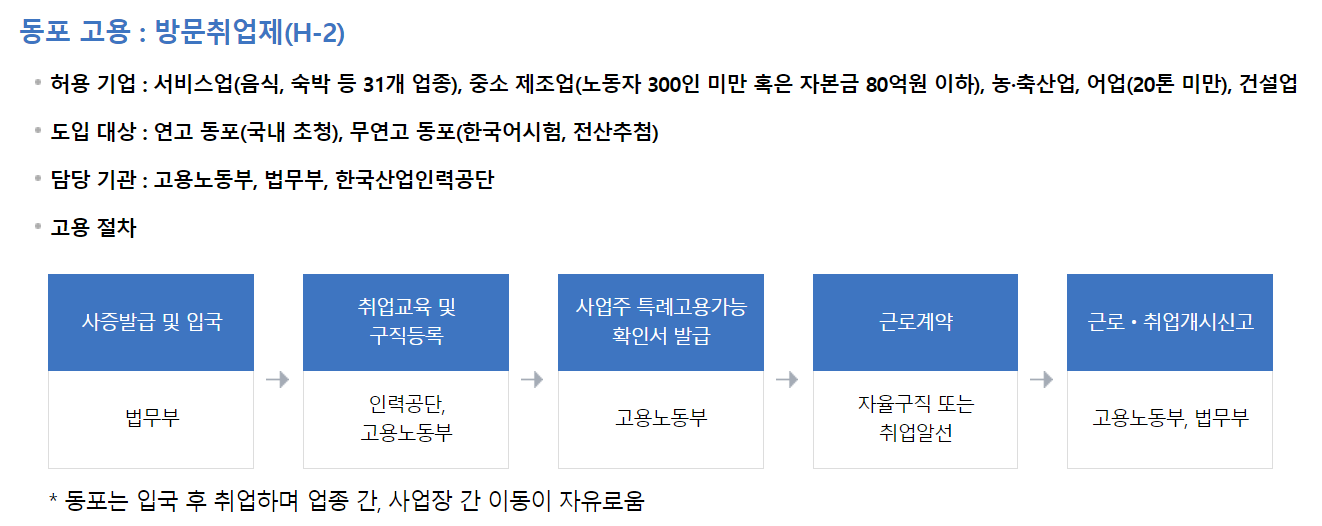 오늘은 김혜선 행정관님과 함께 중국동포의 방문취업비자(H-2) 주제와 비자 발급 종류에 대해 알아보겠습니다. 취업 방문 비자(H-2) 발급 자격