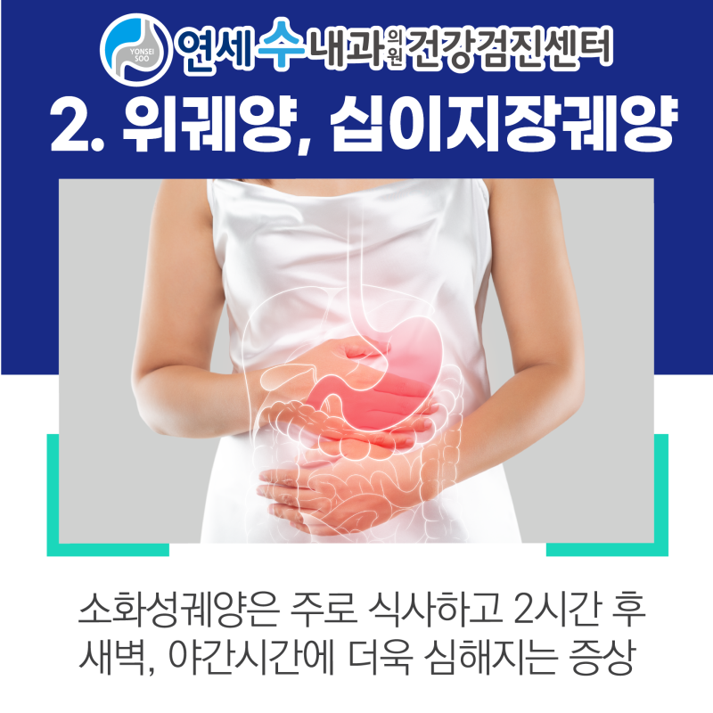 중상복부와 중순태양신경총 부위는 위와 십이지장과 연결되어 있어 위산의 과잉분비로 인해 위점막, 십이지장 점막이 손상되어 중상복부에 잦은 통증을 유발할 뿐만 아니라 상복부 통증까지 유발하게 됩니다. 통증, 태양 신경총의 팽만감, 메스꺼움, 잦은 트림 및 구토. 메스꺼움, 소화불량, 명치에 심한 통증, 명치의 압박감, 상복부에 가스가 차는 등 위와 십이지장이 항상 불편합니다.