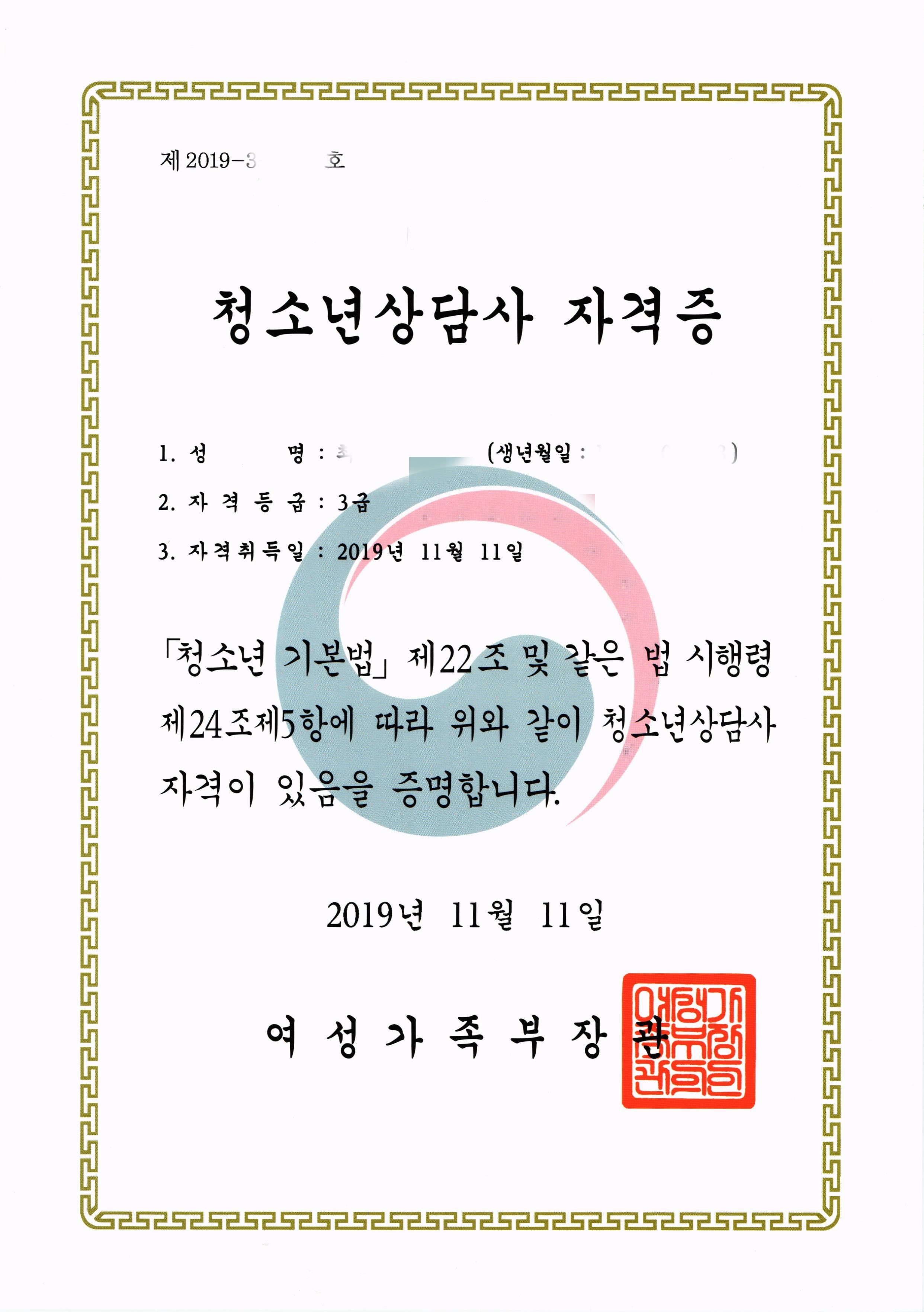 청소년 상담사 ​​3급