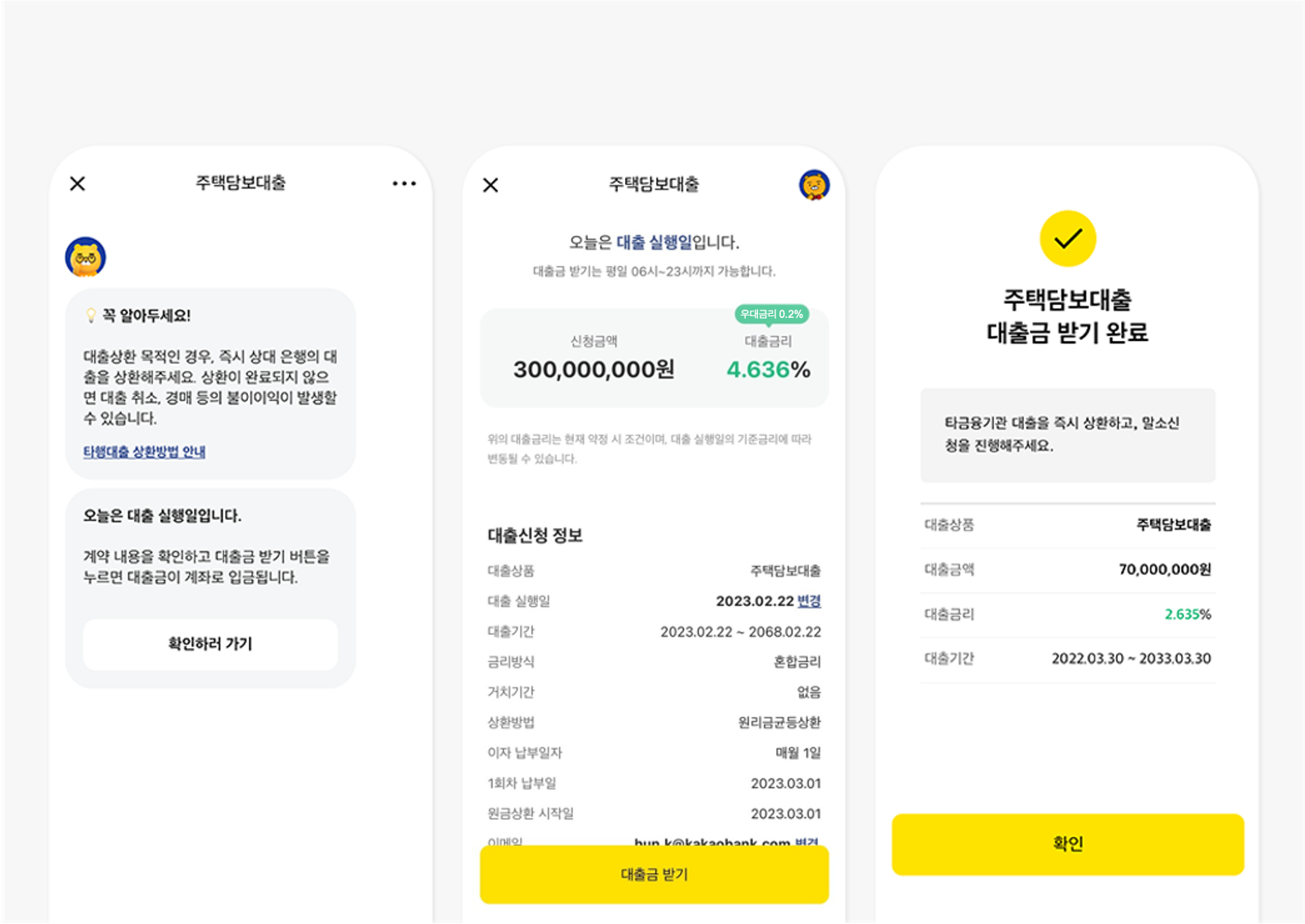 체결일 기준으로 카카오뱅크 대출한도 및 심사를 거쳐야 합니다. #대출 한도는 본인의 담보와 연봉을 넣어 계산하는데 실제로 심사를 받기 전의 정확한 한도가 나옵니다. 나왔다)