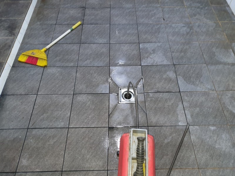내부를 확인하기 위해 내시경을 삽입해 보니 머리카락과 비누 찌꺼기가 서로 엉켜 배관 내부에 세균과 곰팡이가 자라고 있는 것을 발견했습니다. 근본적으로 문제를 해결해야 해서 배수구와 배관을 깨끗이 청소하고 다시 마감을 했습니다. 시공견적을 안내해 드렸습니다. 고객님께서 빠르게 진행을 원하셔서 바로 작업을 시작하였습니다. 먼저, 배관용 내시경 카메라로 확인된 이물질을 제거해야 합니다. 이 경우 플렉스 샤프트 장비가 사용됩니다. 딱딱한 이물질까지 제거가 가능한 장비로 이물질 제거시 사용이 편리한 장비입니다.